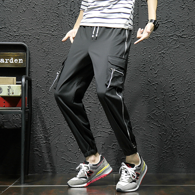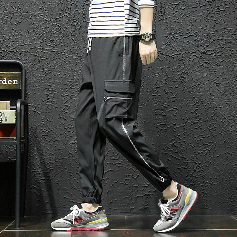 Streetwear Harem Pants Men Ribbons Casual Pants Men Slim Black Joggers Pants Side-pockets Man Trousers Spring