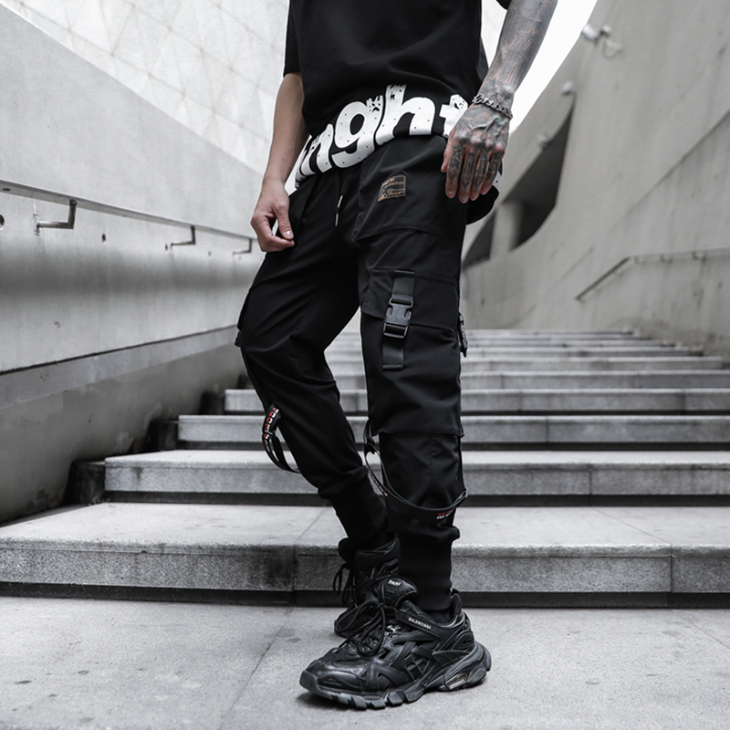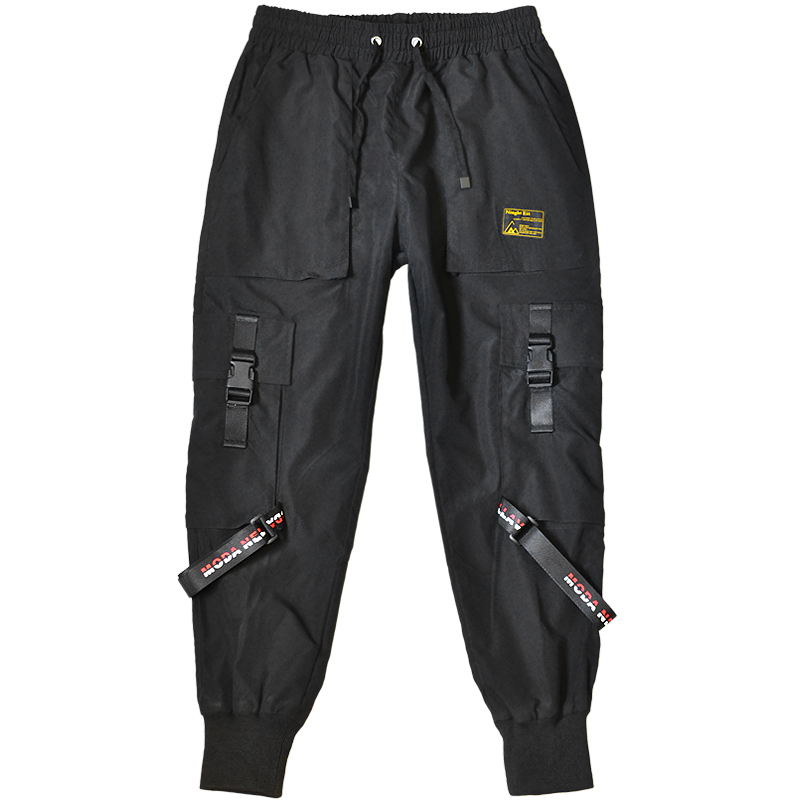 Streetwear Harem Pants Men Ribbons Casual Pants Men Slim Black Joggers Pants Side-pockets Man Trousers Spring