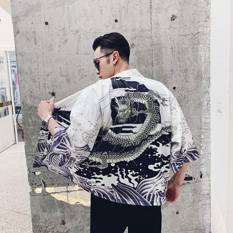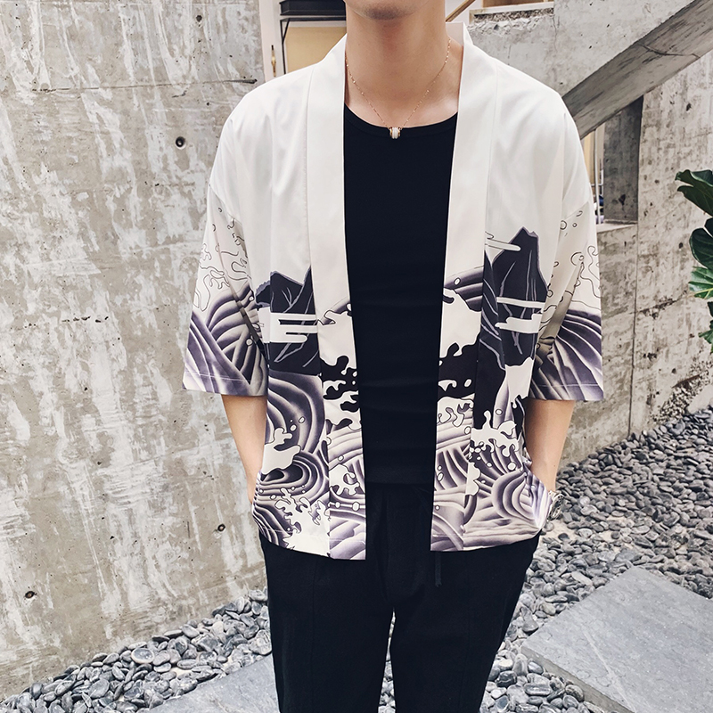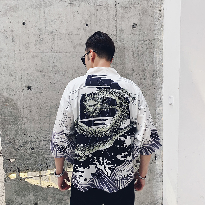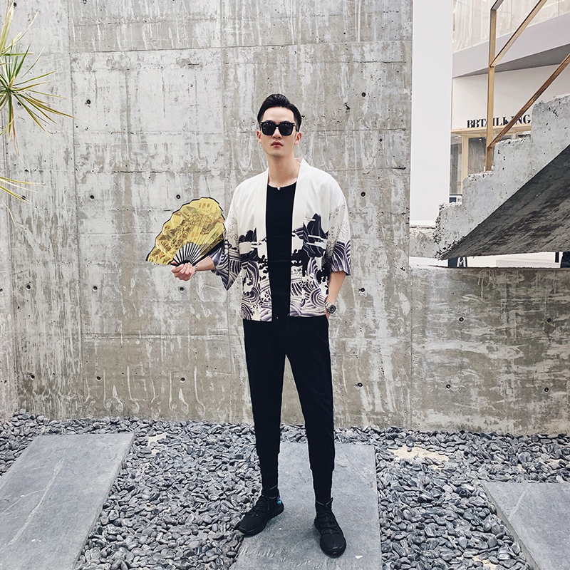 Chinese Style Leisure Shirts Men V-Neck Loose Summer Fashionable Printing Open Stitch Three Quarter Male High Quality Tops