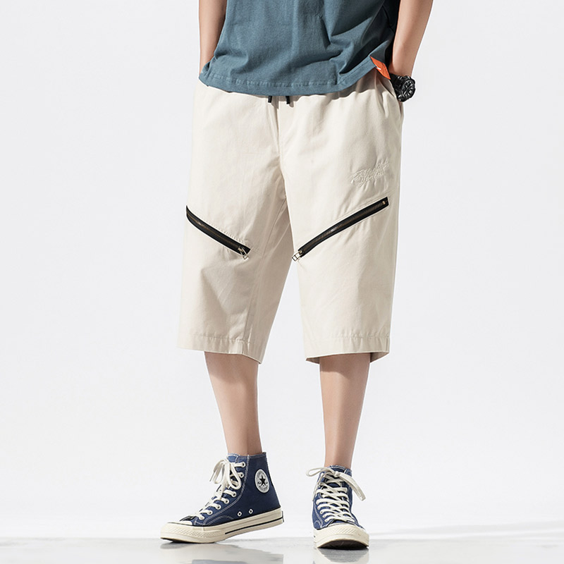 Cotton Mens Harem Pants Summer Male Casual Calf-Length Pants Printed Big Pocket Baggy Pants Trousers Men Streetwear