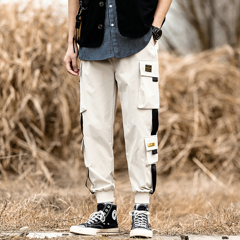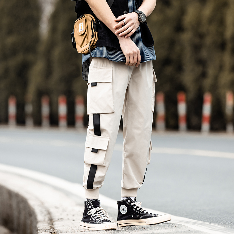 Cargo Pants Joggers Men Harem Pants Multi-pocket Ribbons Man Sweatpants Streetwear Casual Pants Elastic Waist Male Trouser