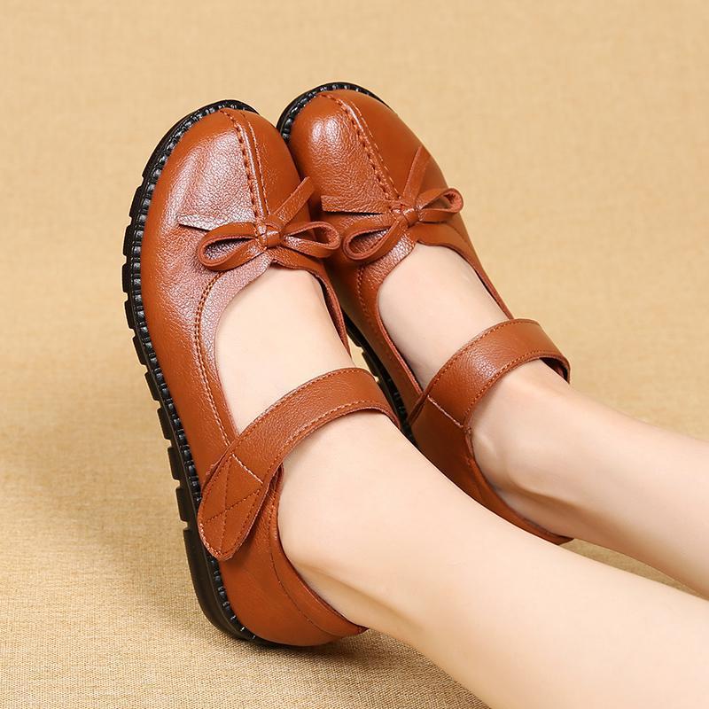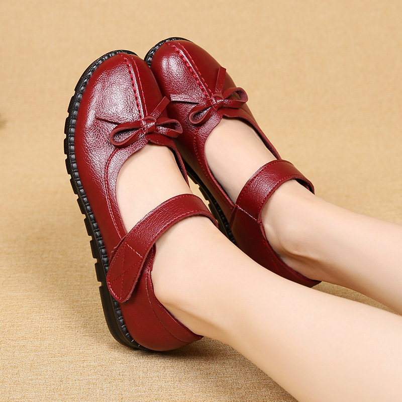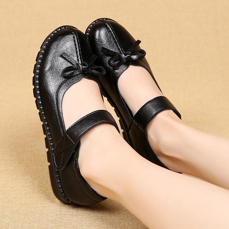 Spring and autumn mother flat shoes soft bottom flat heel middle-aged elderly shoes flat bottom non-slip female leather shoes