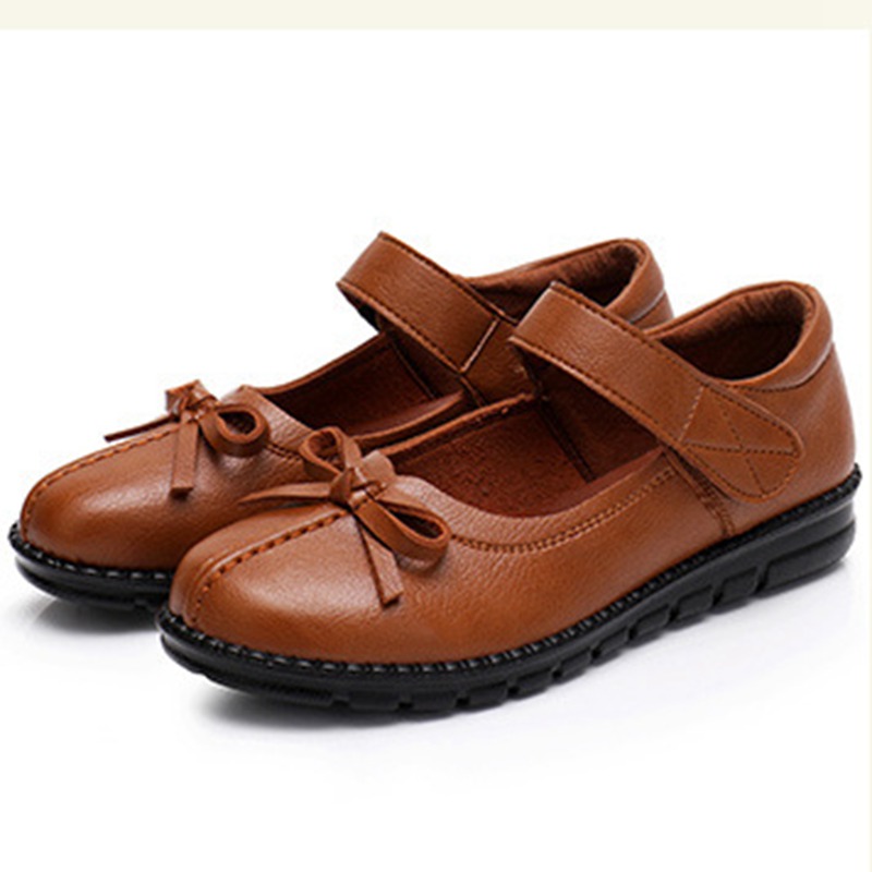 Spring autumn new leather mother flat single shoes middle-aged soft comfortable large size woman shoes grandmother flat shoes