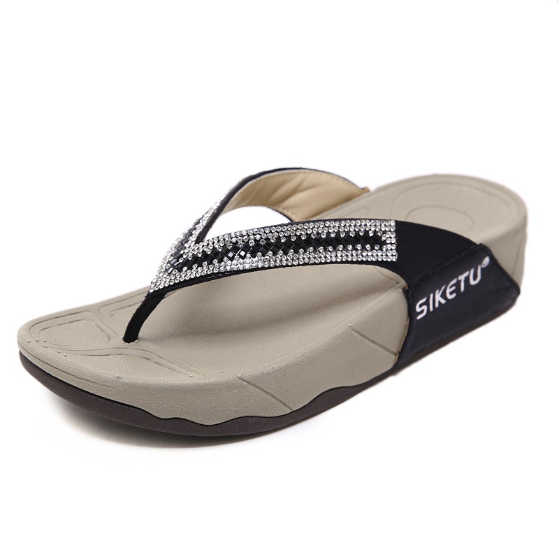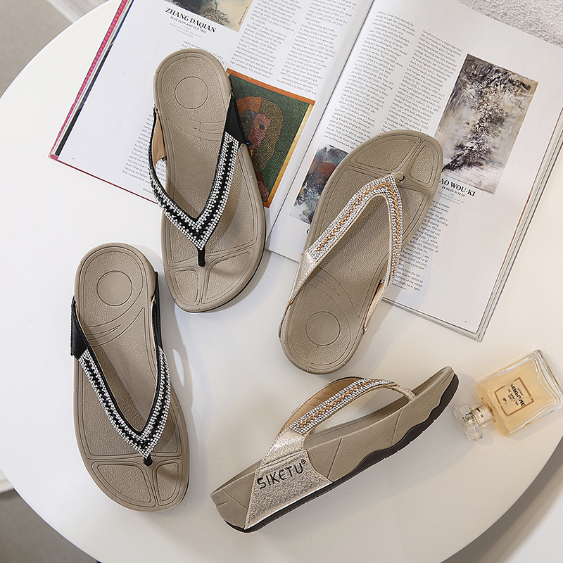 Summer vacation beach women sandals and slippers flip-flops thick heel clip feet comfortable wedge mid heel women slippers