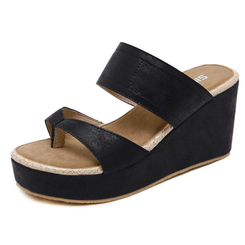 Summer new plus size clip feet comfortable female slippers wedge high heel non-slip light fashion women sandals and slippers