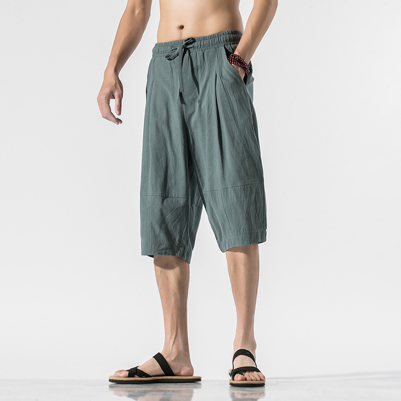 New Men Summer Cotton Linen Harem Pants Fashion Baggy Casual Loose Cropped Pants Drawstring Male Trousers Streetwear