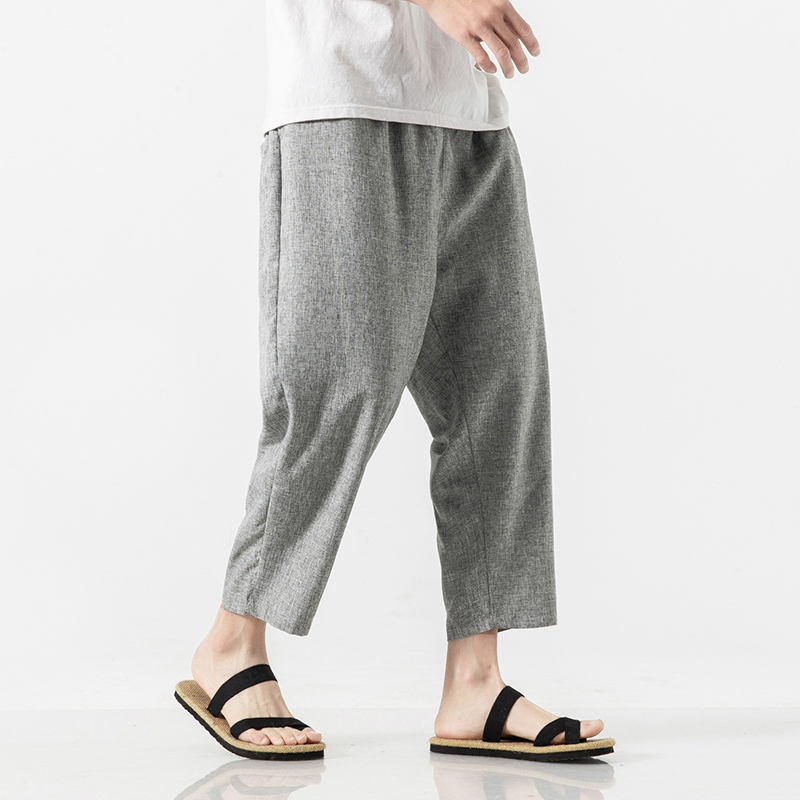 Men Printed Chinese Style Summer Casual Pants Mens Cotton Wide Leg Loose Trousers Male Oversize Calf-Length Pants