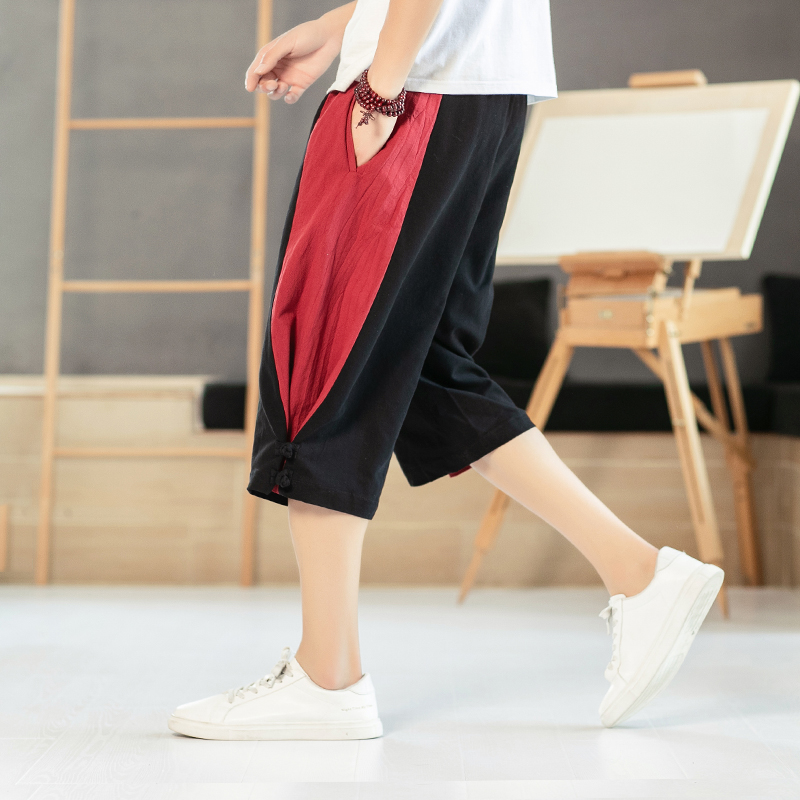 New Men Summer Cotton Linen Harem Pants Fashion Baggy Casual Loose Cropped Pants Drawstring Male Trousers Streetwear