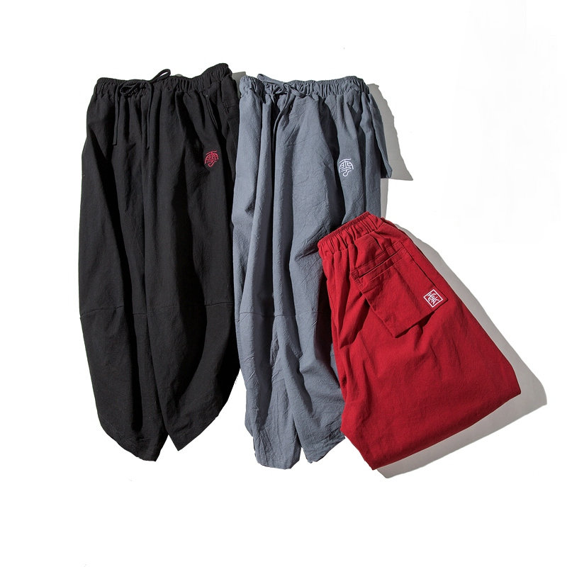 Harajuku Men Harem Pants Mens Summer Cotton Linen Joggers Pants Male Vintage Chinese Style Sweatpants Casual Large Size 5XL