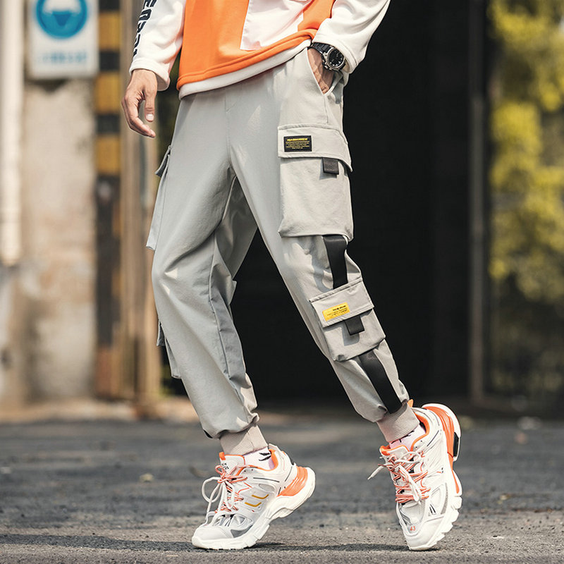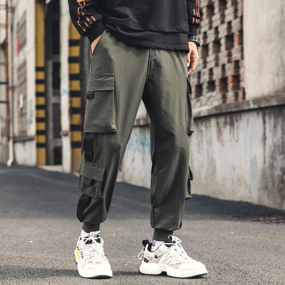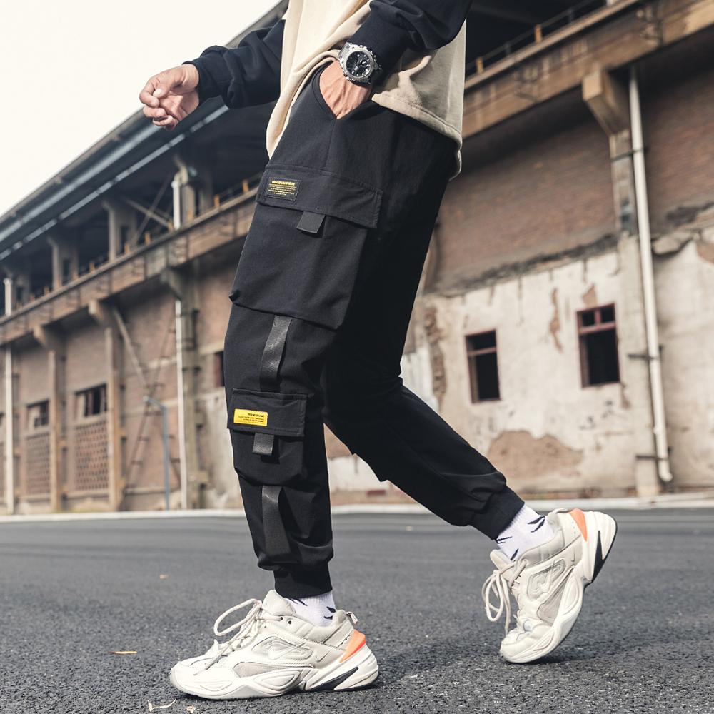 Streetwear Harem Pants Men Ribbons Casual Pants Men Slim Black Joggers Pants Side-pockets Man Trousers Spring