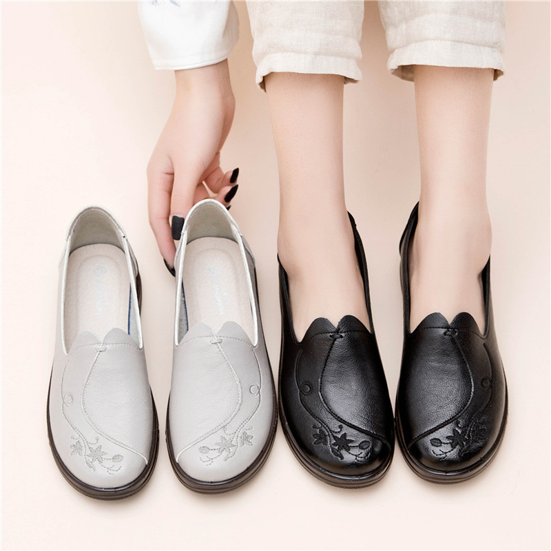 Spring Autumn Fashion Soft Leather Women Casual Shoes Women’s Loafers Flat Shoes mother single Shoes women’s walking shoes