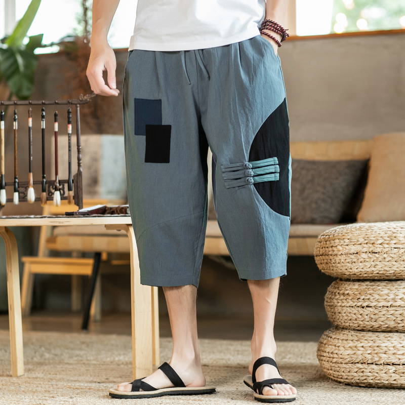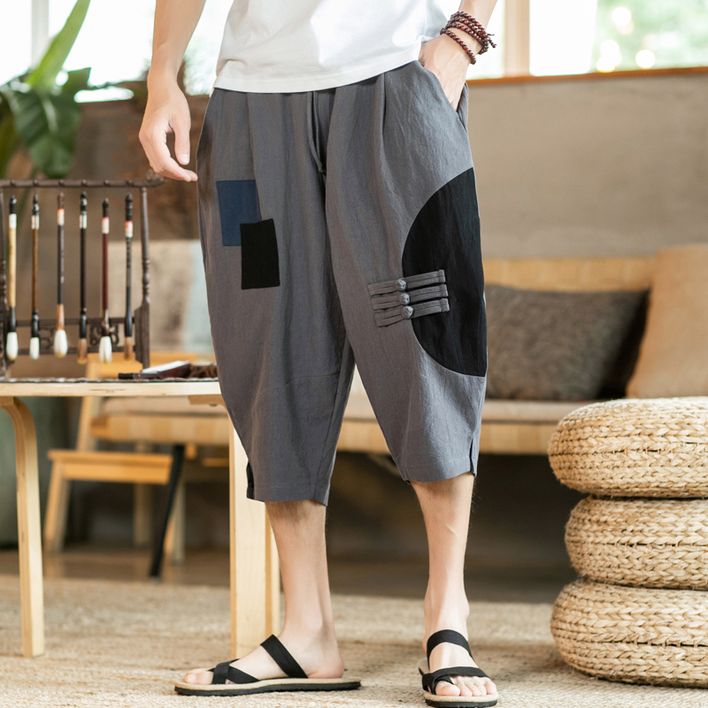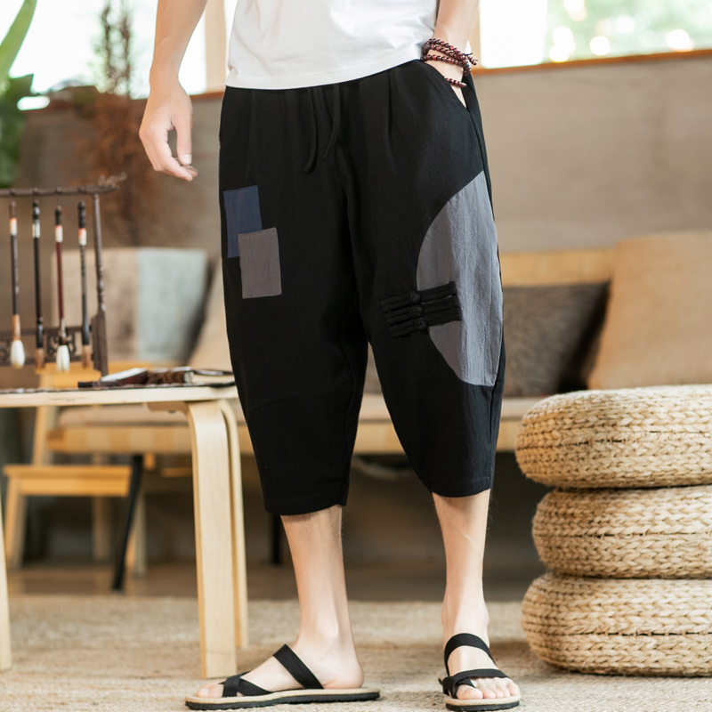 Summer Men Harem Pants Chinese Style Mens Casual Pants Patchwork Cotton Linen Loose Sweatpants Male New Large Size M-5XL