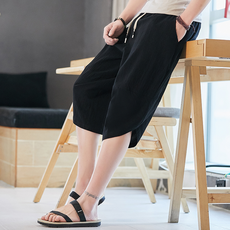 New Men Summer Cotton Linen Harem Pants Fashion Baggy Casual Loose Cropped Pants Drawstring Male Trousers Streetwear
