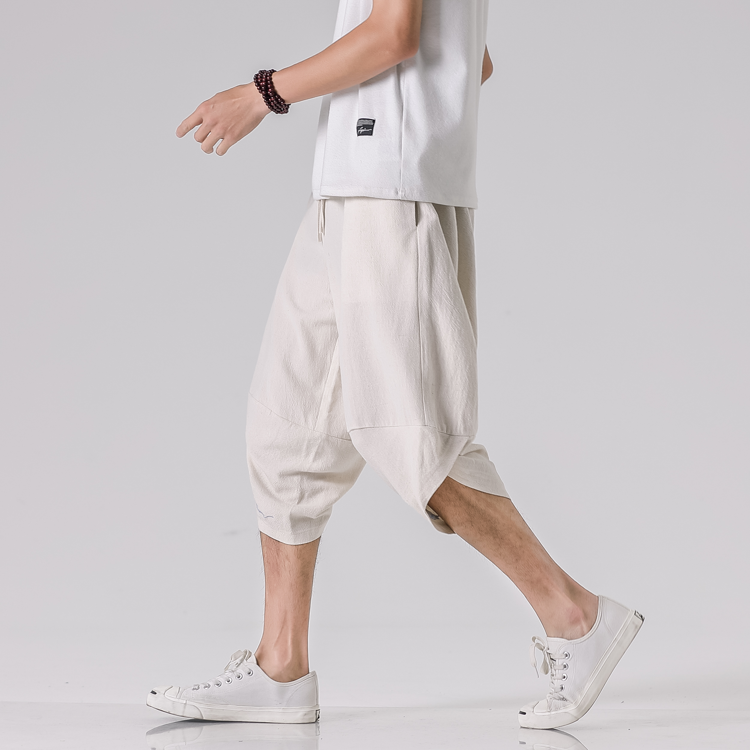 Men Pants Men’s Wide Crotch Harem Pants Loose Large Cropped Trousers Wide-legged Bloomers Bermuda Masculina Male Pants