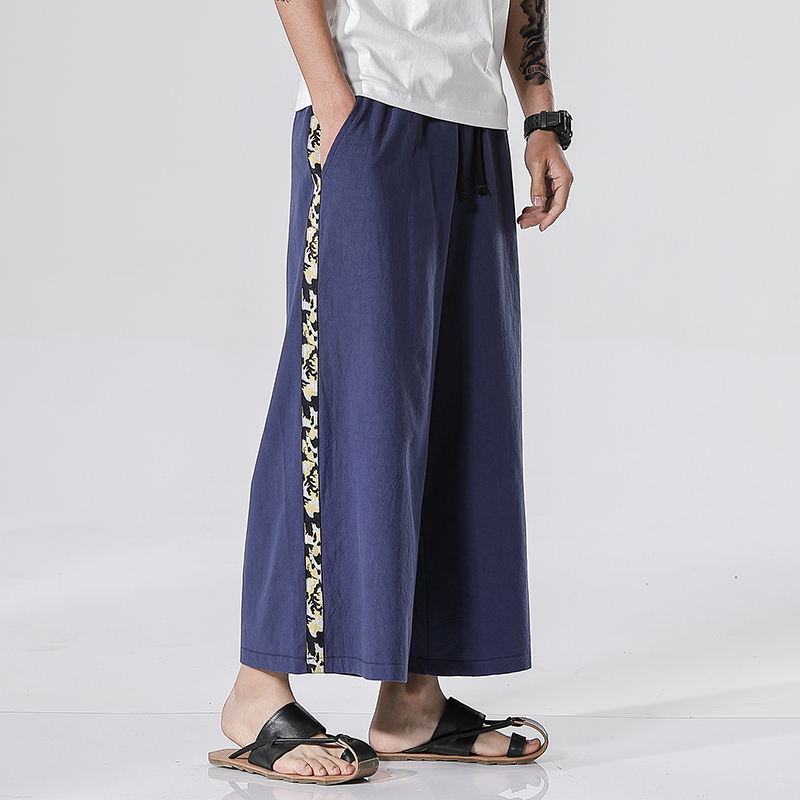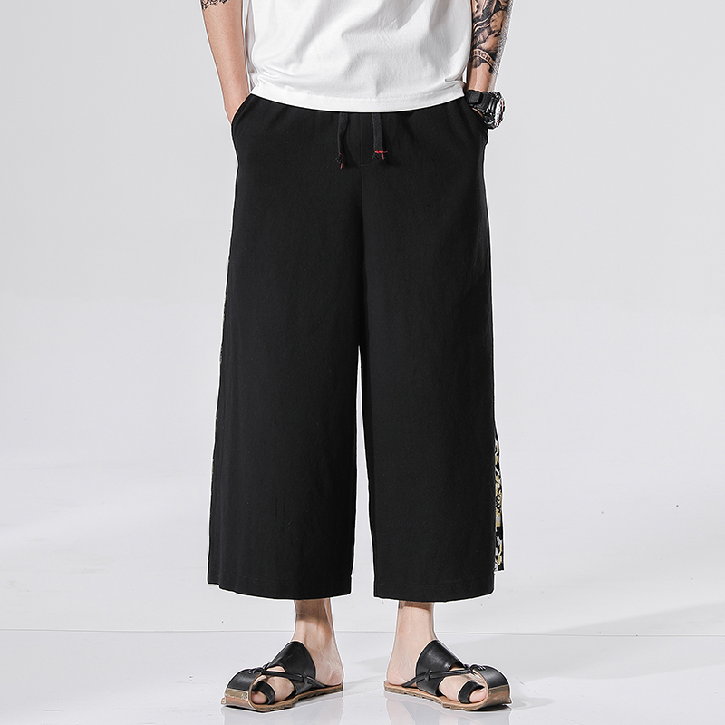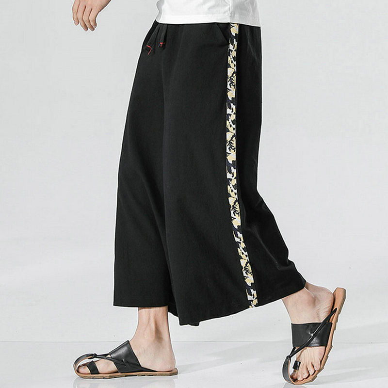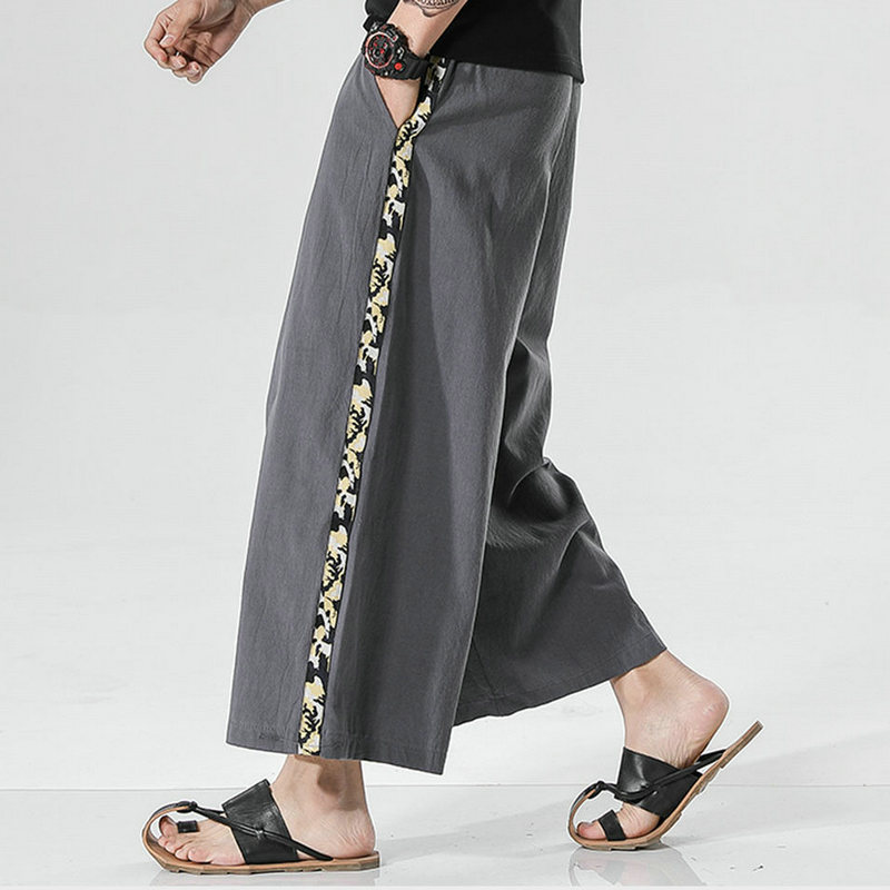 New Men Summer Cotton Linen Harem Pants Fashion Baggy Casual Loose Cropped Pants Drawstring Male Trousers Streetwear
