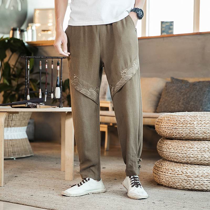 Embroidery Men Harem Pants Vintage Trousers Mens Jogging Pants Cotton Linen Casual Sweatpants Male Big Size Streetwear 5XL