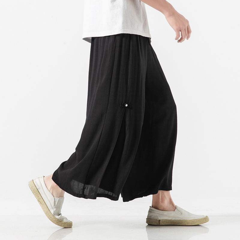 Men Printed Chinese Style Summer Casual Pants Mens Cotton Wide Leg Loose Trousers Male Oversize Calf-Length Pants