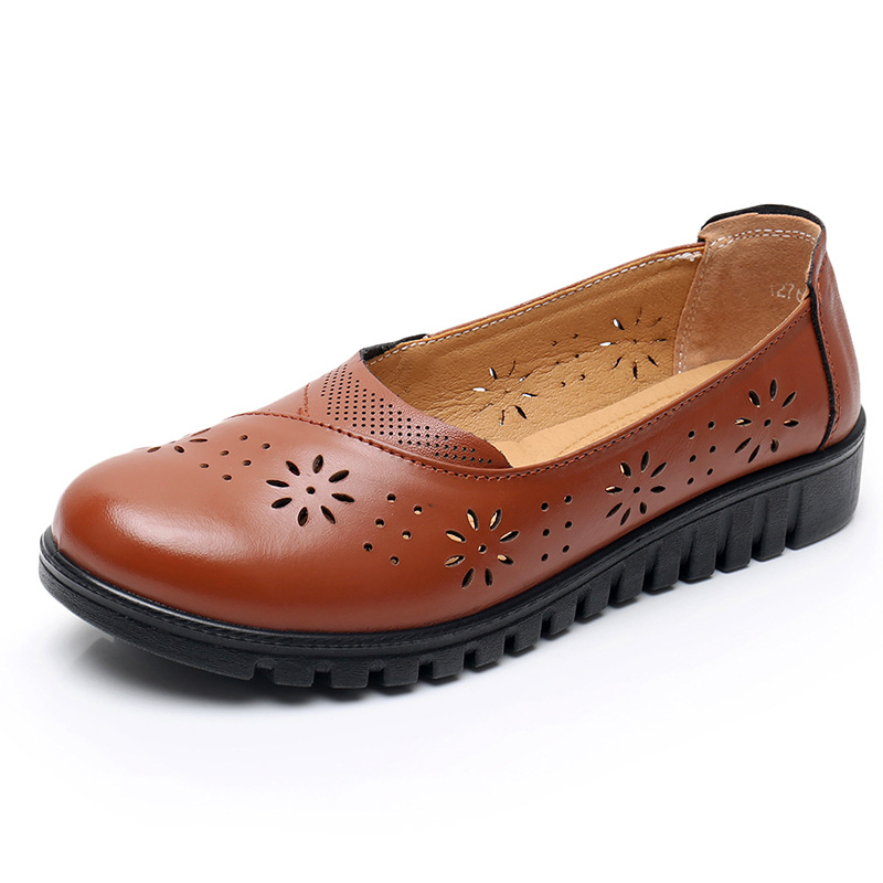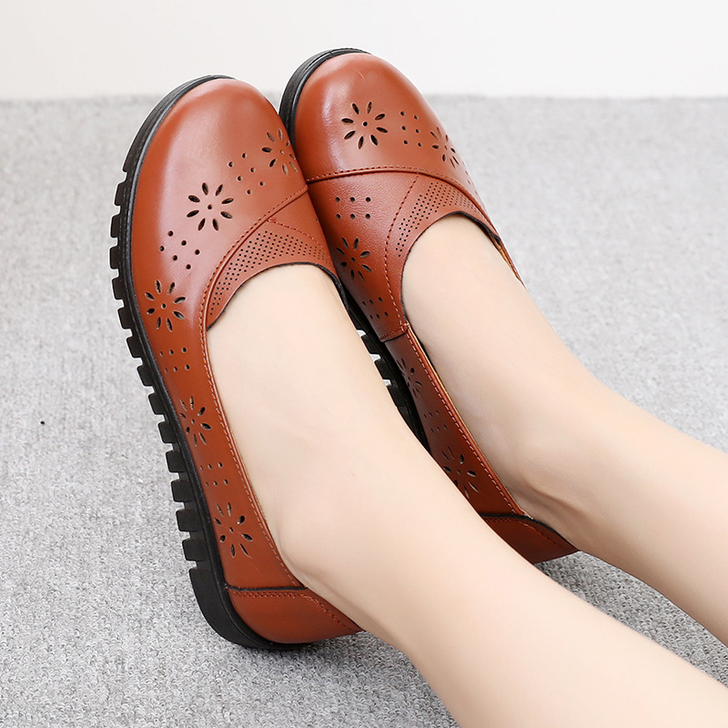 Flat bottom mother shoes soft bottom middle-aged and old women’s shoes comfortable breathable non-slip female leather shoes