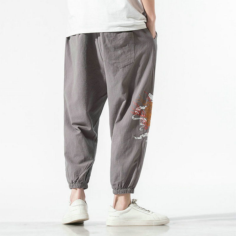 Cotton Mens Harem Pants Summer Male Casual Calf-Length Pants Printed Big Pocket Baggy Pants Trousers Men Streetwear
