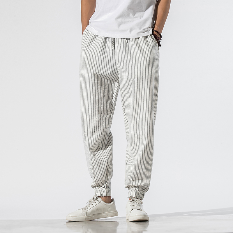 New Men‘s Autumn Cotton Linen Harem Pants Striped Fashion Korean Style Jogger Casual Loose Male Pants Trousers Streetwear