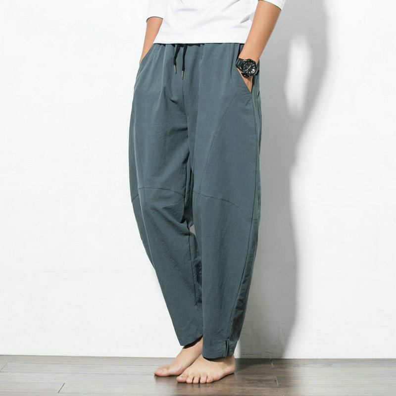Summer Mens Wide Leg Crotch Pants Male Casual Harem Pants New Fashion Cotton Linen Men Jogging Pants Large Size M-5XL