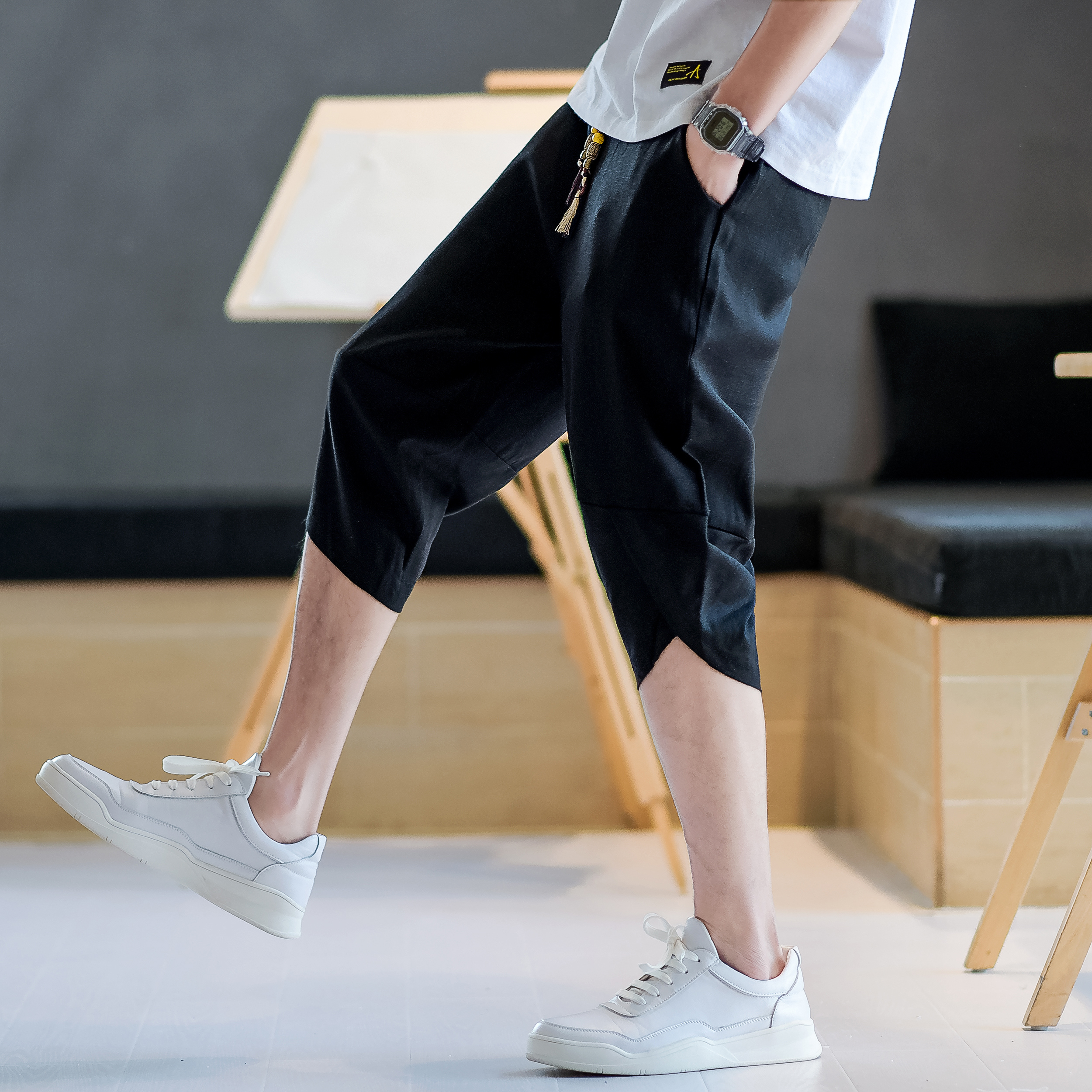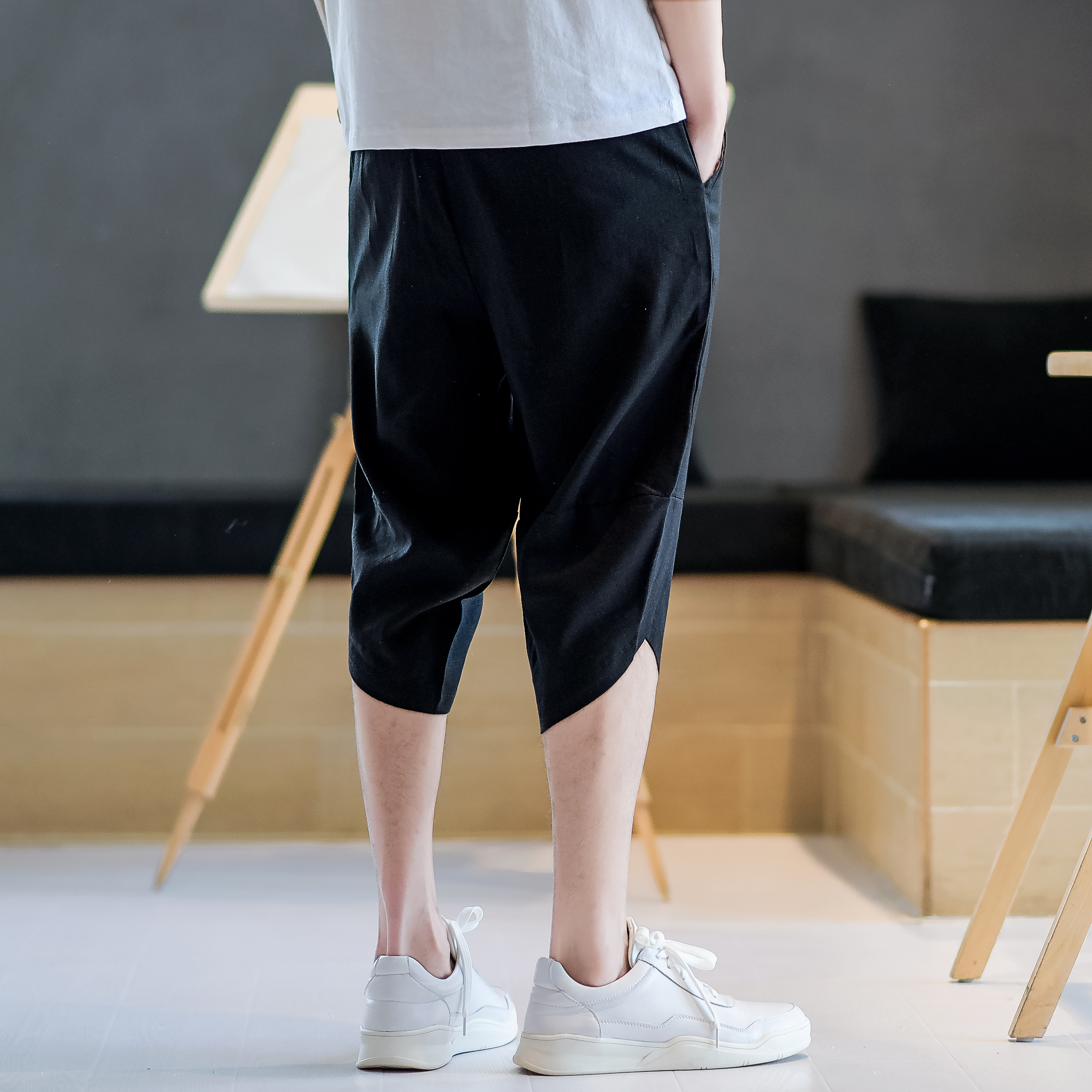 Male Harem Pants Men Calf Length Cotton Linen New Hip Hop Streetwear Bermuda Masculina Male Pants Trousers Dropshipping