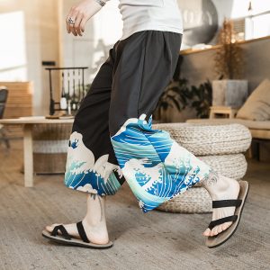 Men’s Casual Harem Pants Man Japaning Loose Jogging Pants Streetwear Linen Harajuku Style Mens Sweatpants Large Size M-5XL
