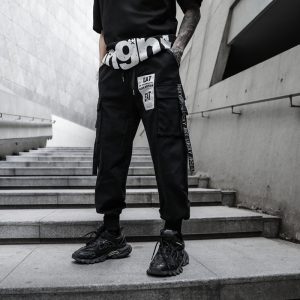 Streetwear Black Men’s Cargo Pants Ribbon Mens Jogger Hip Hop Harem Pants Side Pocket Casual Loose Harajuku Sweatpant M-5XL