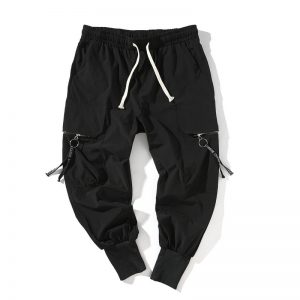 Fashion Men Hip-Hop Pants Streetwear Ribbon Men’s Overalls Leisure Pocket Pants Elastic Waist Trousers Sweatpants Streetwear