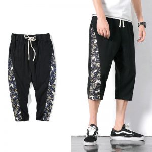 Male Harem Pants Men Calf Length Cotton Linen New Hip Hop Streetwear Bermuda Masculina Male Pants Trousers Dropshipping