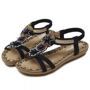 SIKETU Summer new women’s sandals Bohemia fashion flowers diamond soft bottom women sandals large size beach flat sandals 40 41