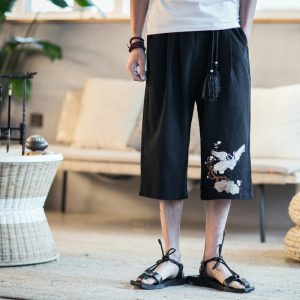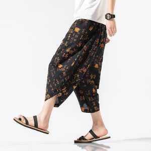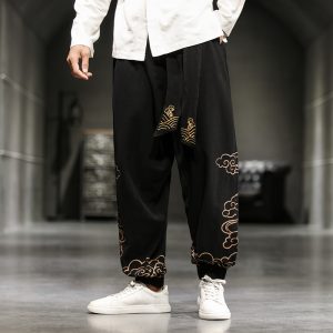 Cotton Linen Men Wid Leg Pants Embroidery Harem Pants Mens Ankle-Length Pants Big Size Jogging Trousers Male Streetwear 5XL