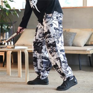 Fashion Men Wide Leg Pants Streetwear Mens Harem Pants Cotton Linen Chinese Style Sweatpants Male Leisure Large Size M-5XL
