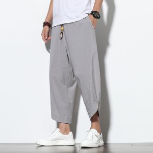 Harajuku Style Mens Wide Leg Pants Leisure Cotton Linen High Quality Men’s Harem Pants Summer Sweatpants Male Streetwear