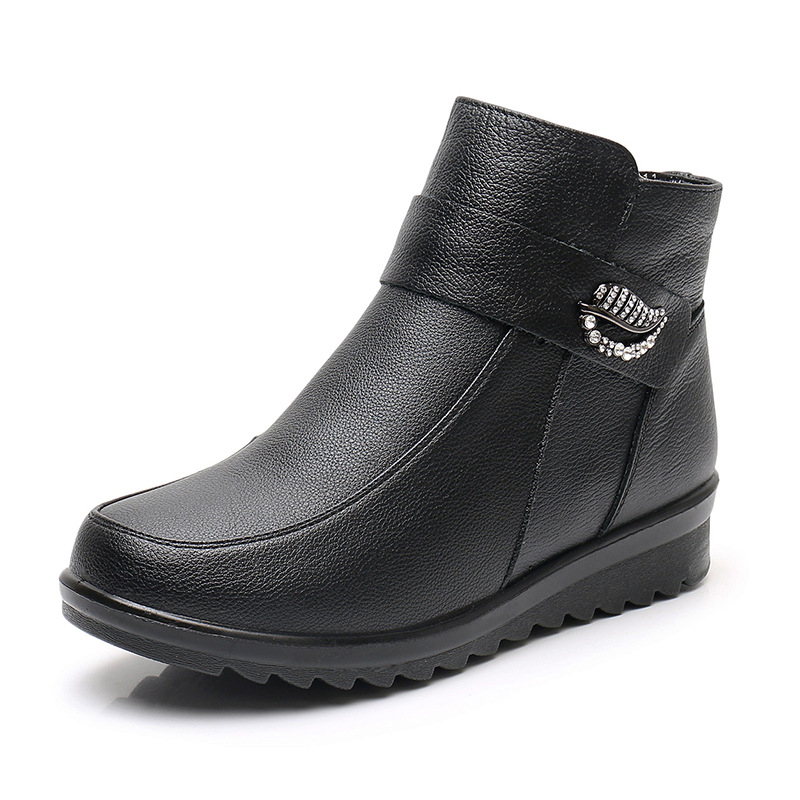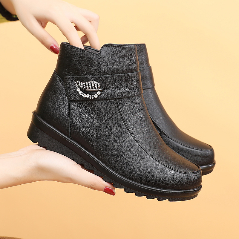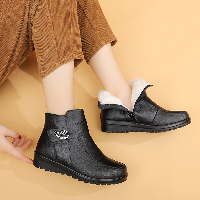 New winter women’s cotton shoes plus velvet mother’s boots soft sole and ankle snow boots flat-bottom non-slip cotton shoes