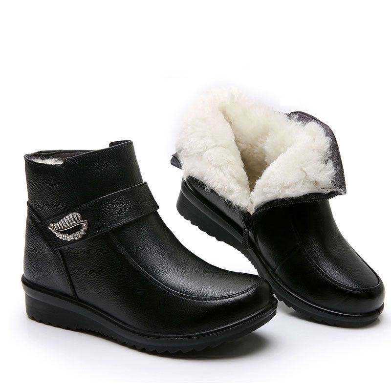 Women Boots Plus Size Warm Plush Fur Winter Boots Women Waterproof Leather Non-slip Flat Snow Ankle Boots ladies casual shoes