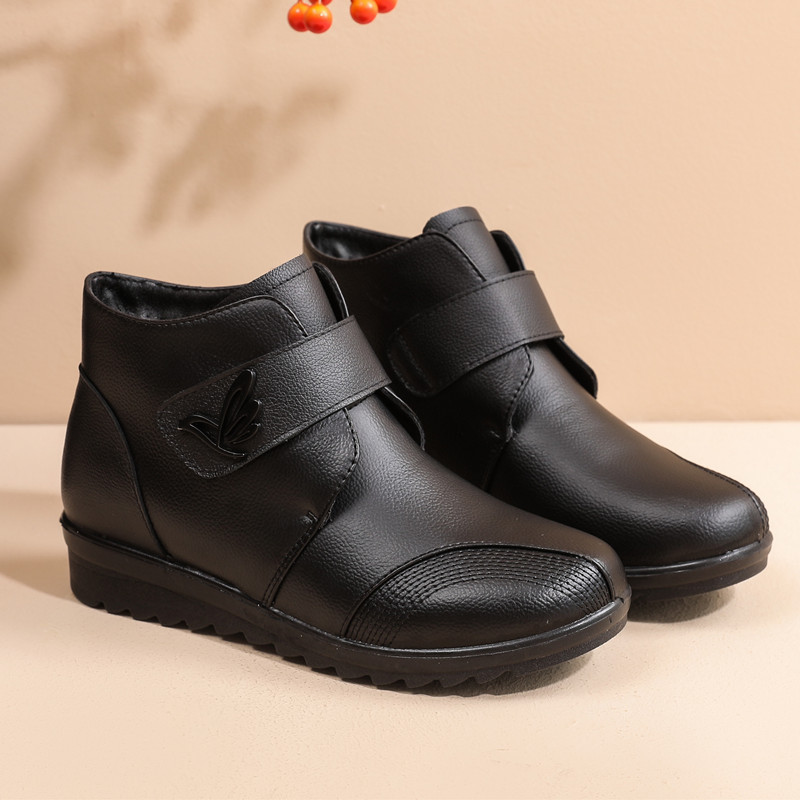 Winter mother’s shoes plus velvet warm leather middle-aged leather shoes flat non-slip female snow boots and ankle outdoor boots