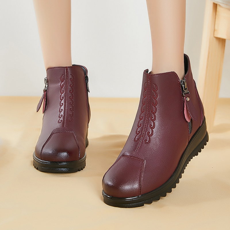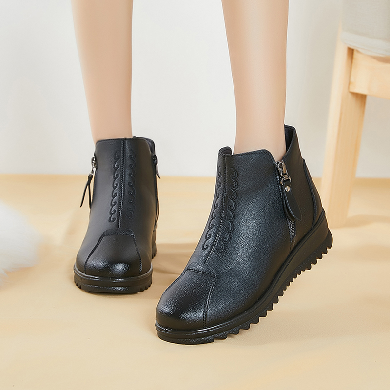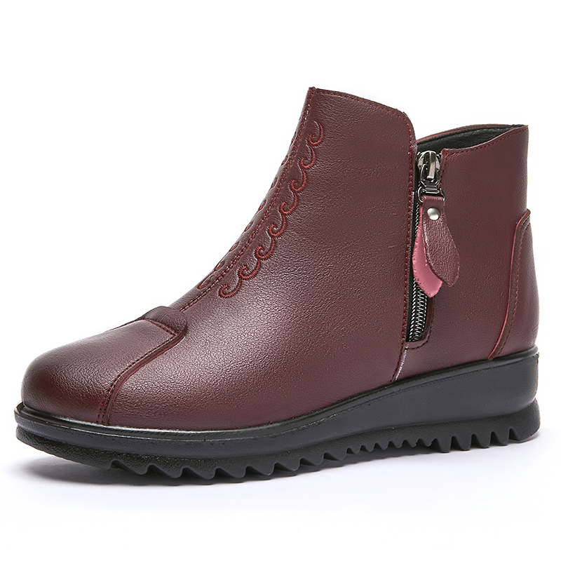 Mother shoes soft sole comfortable winter leather middle-aged shoes plus velvet non-slip warmth and ankle female snow boots