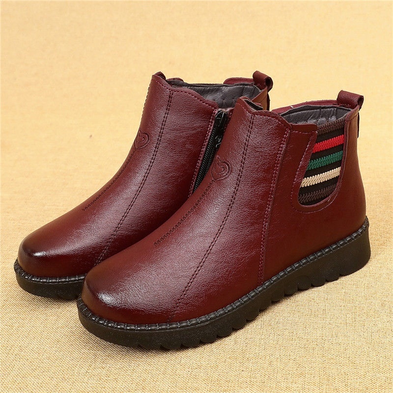 Mother cotton shoes winter plus velvet flat non-slip women’s shoes middle-aged short boots waterproof women ankle snow boots