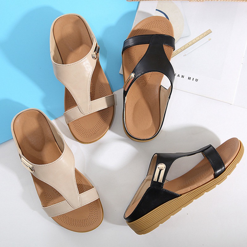 New wedge heel women sandals summer leisure thick-soled mother sandals breathable Non-slip women’s slippers for outer wear