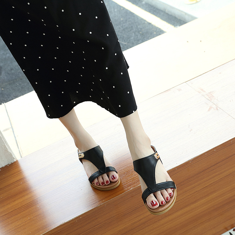 Summer comfortable soft bottom flat heel female sandals casual large size low heel non-slip lightweight beach women sandals