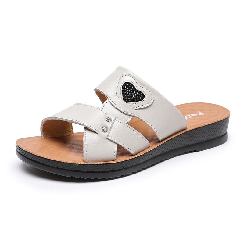 Women’s Summer Leather Open Toe Casual Slippers Woman Soft Bottom Beach Slip On Sandals Mother Wedges Slippers free shipping
