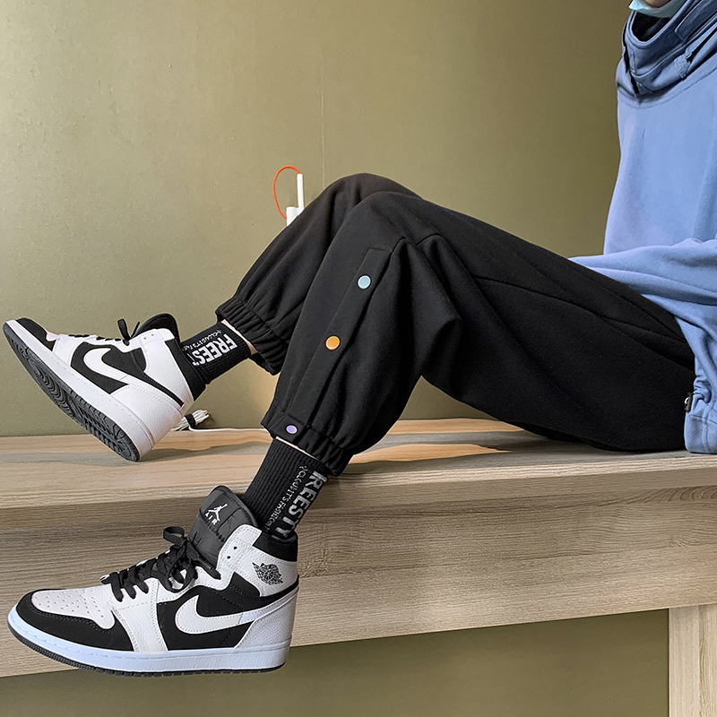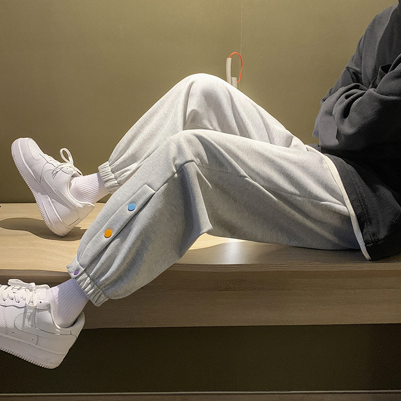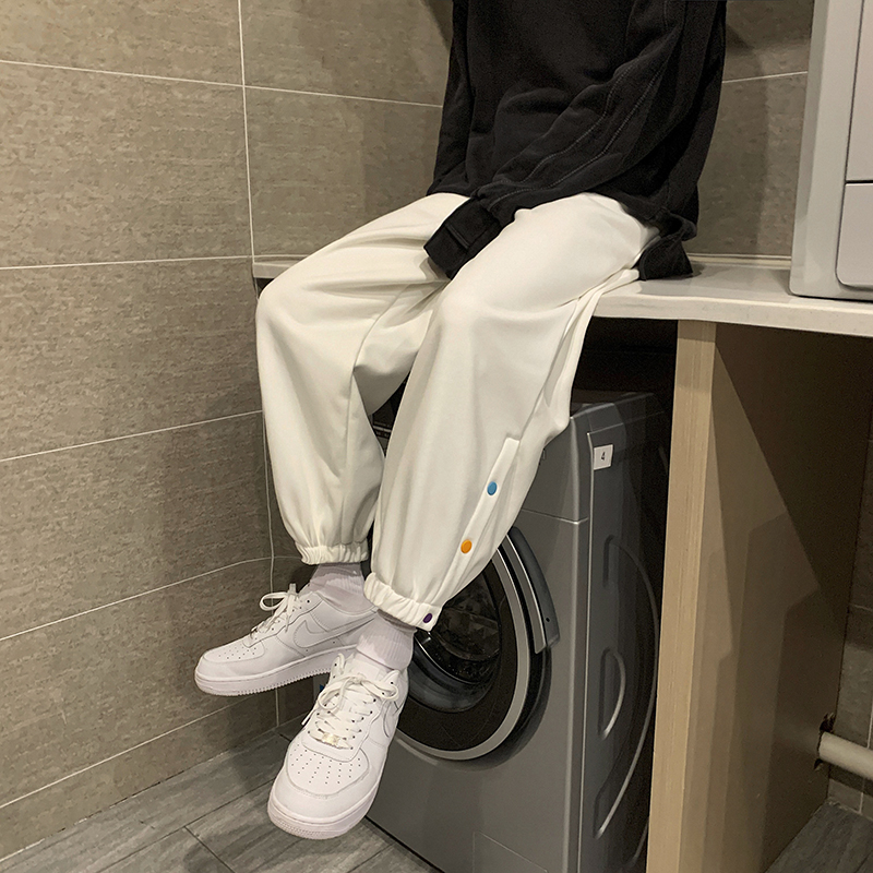 New Trend Men And Women Korean Style Casual Trousers Youthful Vitality Ankle-Length Tricolor Buttons Cotton Pants Size M-2X