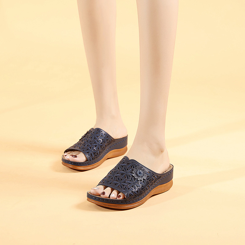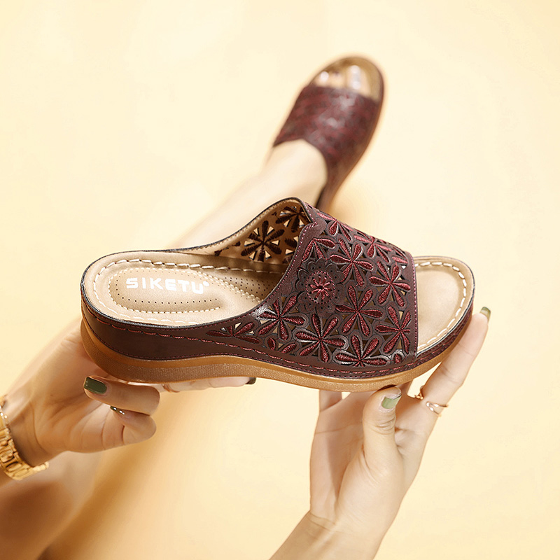 Summer leather soft-soled beach women’s slippers lightweight and comfortable mid-heel wedges non-slip open-toe women’s sandals