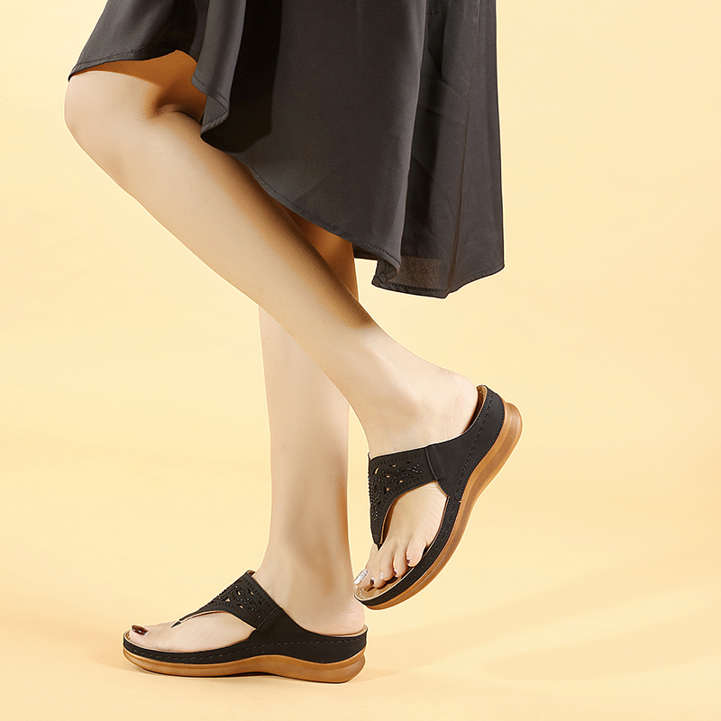 Summer leather soft-soled beach women’s slippers lightweight and comfortable sandals mid-heel wedges non-slip women’s flip flops