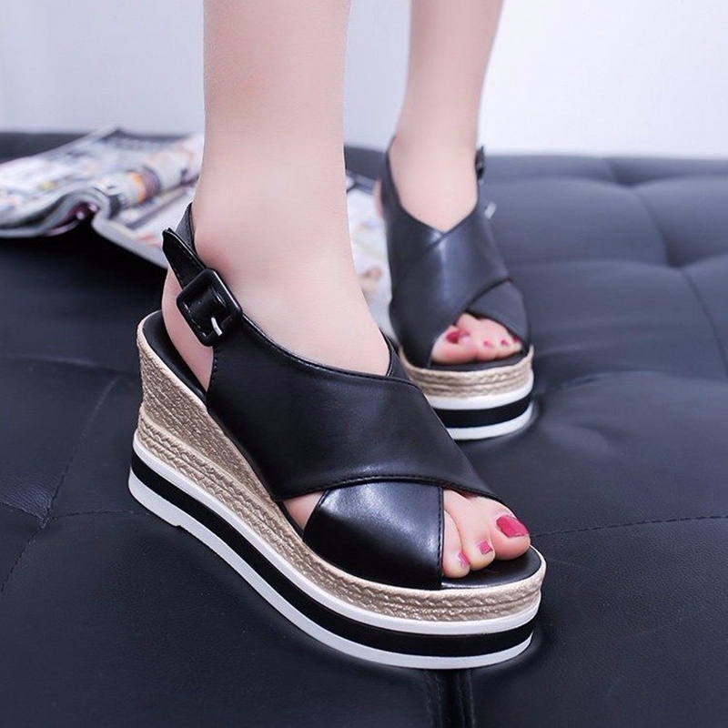 Cheap High Heels, Buy Quality Shoes Directly from China Suppliers:Summer Buckle Women’s Sandals Fashion high Heel Platform Open Toe Black Women Sandals Shoes Female Casual Wedges Sandals