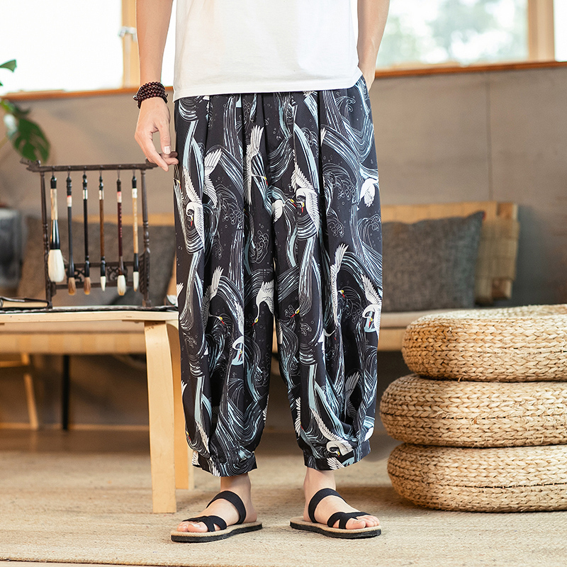 Men Pants Men’s Wide Crotch Harem Pants Loose Large Cropped Trousers Wide-legged Bloomers Bermuda Masculina Male Pants