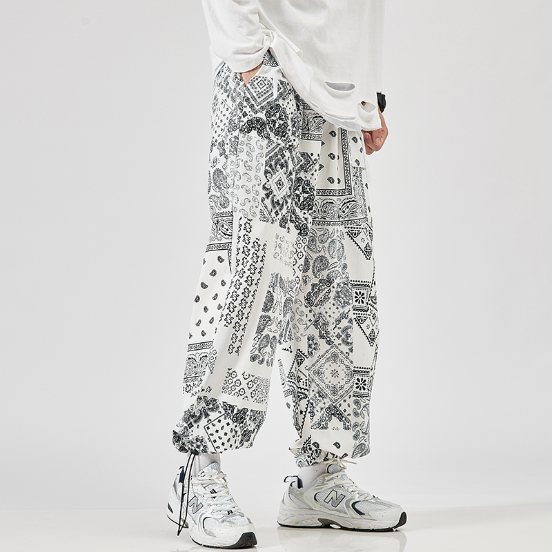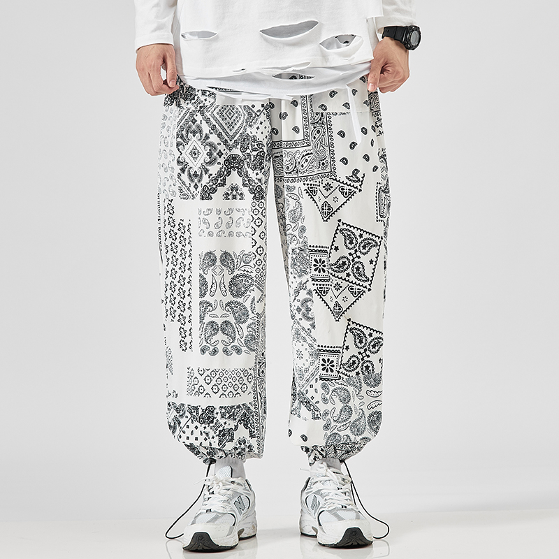 Cotton Mens Harem Pants Summer Male Casual Calf-Length Pants Printed Big Pocket Baggy Pants Trousers Men Streetwear