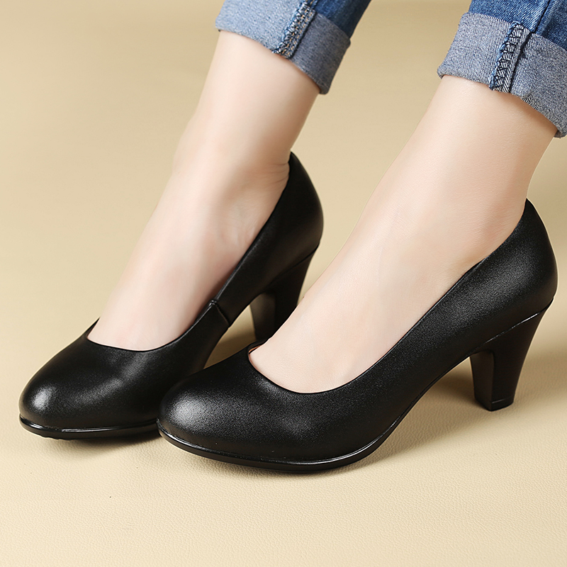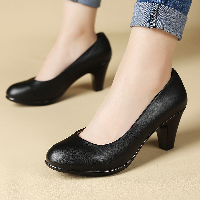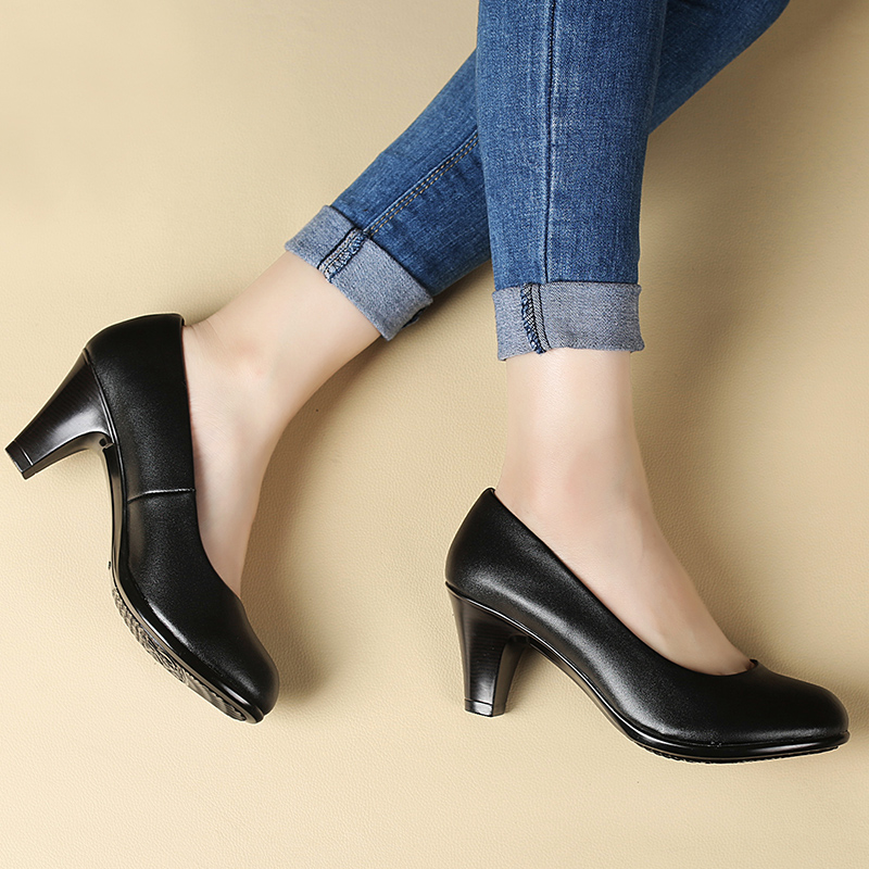 Ladies shoes spring and autumn new black leather shoes sexy comfortable women work high-heeled shoes Female Sexy High Heel Shoes