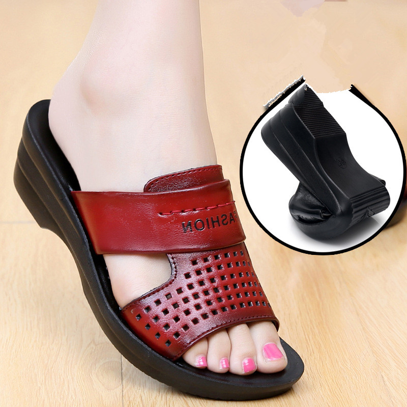 Cheap Slippers, Buy Quality Shoes Directly from China Suppliers:Women Sandals Genuine Leather Fashion Summer Women Flats Shoes Female Platform Wedges Open Toe Beach Casual Slippers Shoes